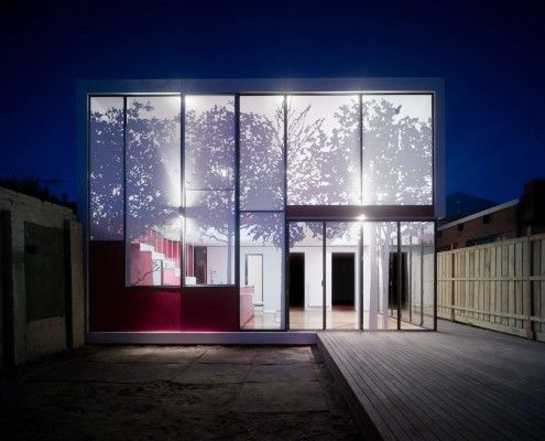 Raven Street House brings new meaning to 'open-plan' with curtains, shutters and dazzling colored glass where the walls should be. There's even an indoor tree!